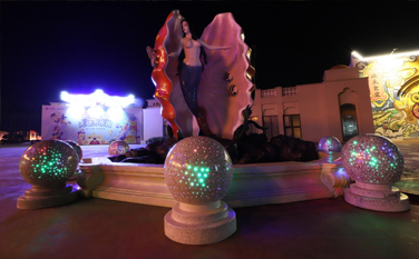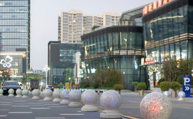 4:美仑美焕:智慧雕琢的艺术极品,倾力打造的璀璨明珠,霓虹动感灯光效果, 以时尚、实用而迅速风靡全球。 容易被发现,起警示作用,保障路人和车辆的安全。100多个磨石发光障碍球驻守儿童公园。